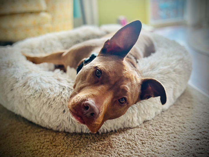 Busy moved to Bend in 2017, where she adopted Stephanie our lead technician. Shortly thereafter, she joined Riverside as a PR liaison. She loves her job interacting with clients and being an ambassador for bullies everywhere. In her free time she enjoys having lots of snacks, wrestling with her cats, and hanging out with her best dog friends. She is a champion of tug-o-war. Be sure to say hello the next time you are in the clinic!